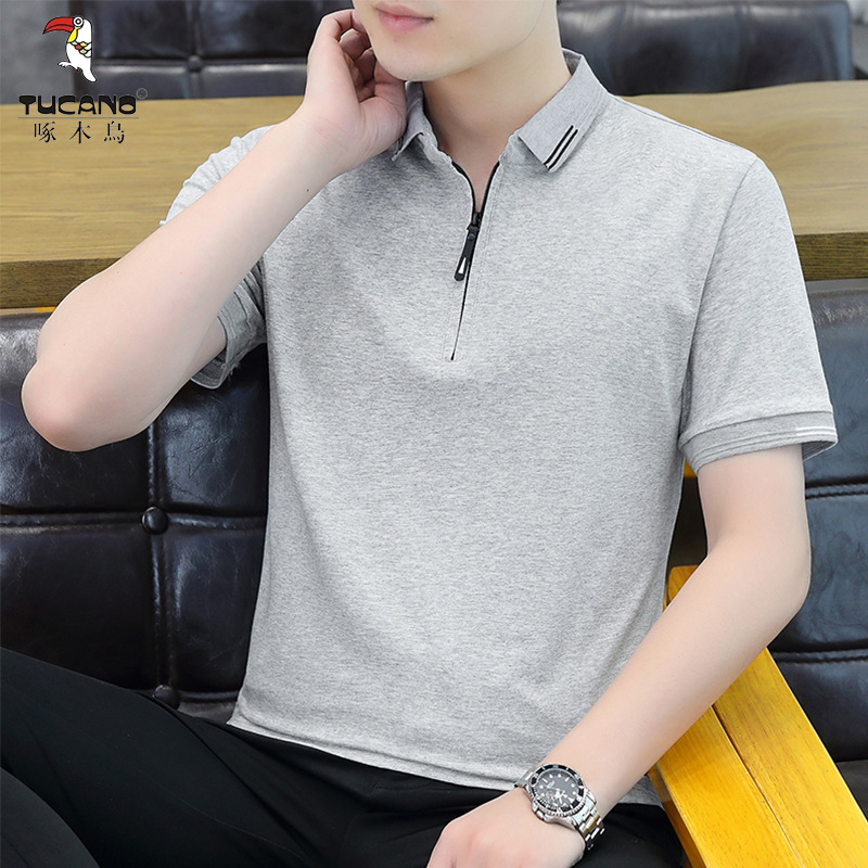 ウッドペッカー純綿ポロシャツ半袖メンズ夏の新しいハイエンドラペルファッションスリムビジネスカジュアルトップ