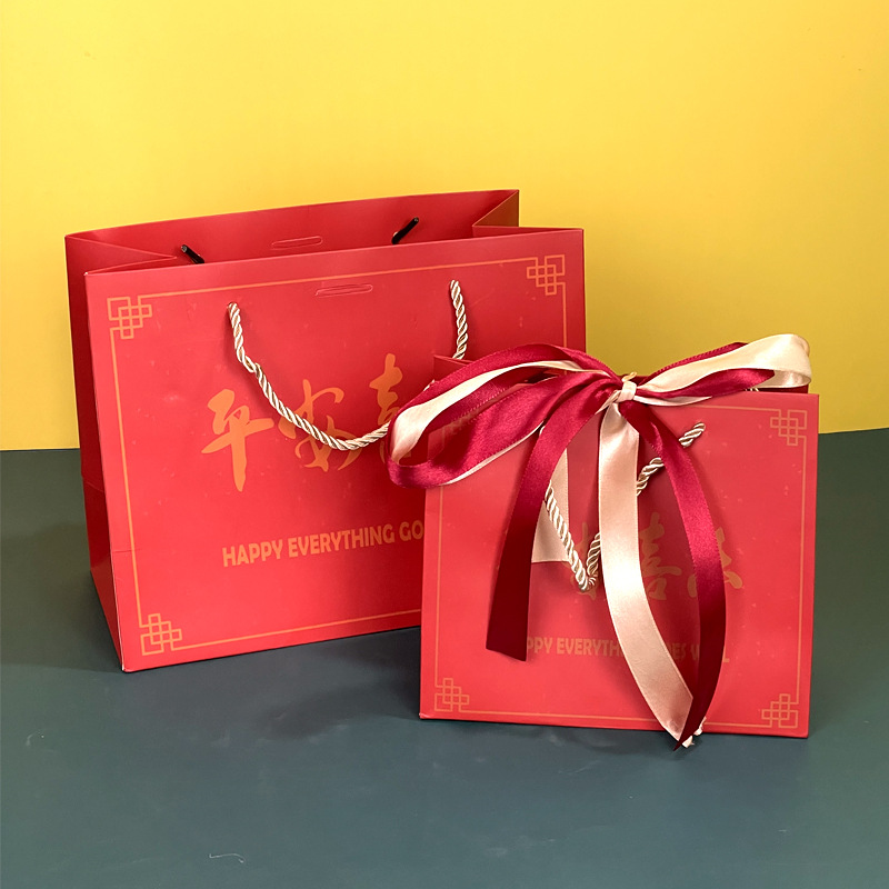 平安喜楽ギフトバッグ 赤い紙製包装袋 紙袋 高級感のあるバッグ 手持ちで持ち運びに便利で見た目も良くなる