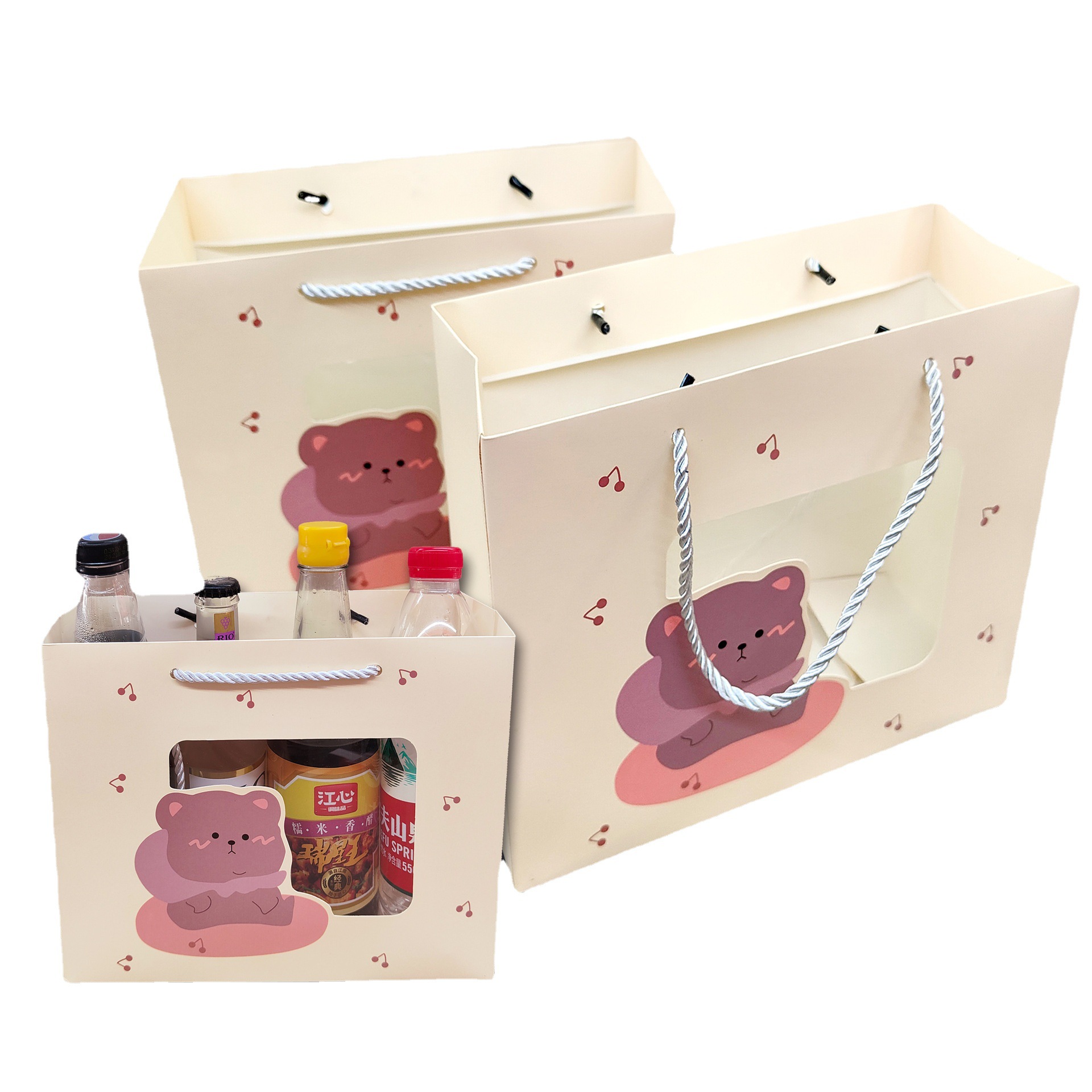 くまちゃん窓付きハンドバッグ、包装袋、紙袋、ギフトバッグ、インスタ風透明バッグ、持ち手付きギフトバッグ、可愛い