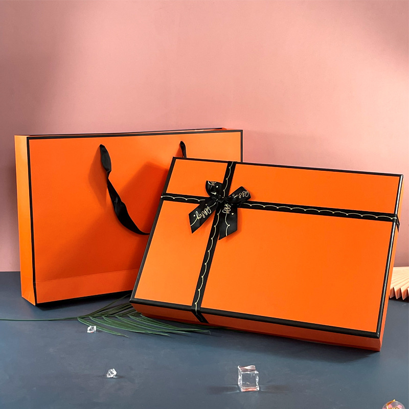 オレンジリボンライト高級オレンジ誕生日サプライズボックス 4 ピースギフトボックス包装ボックスギフトボックス空箱
