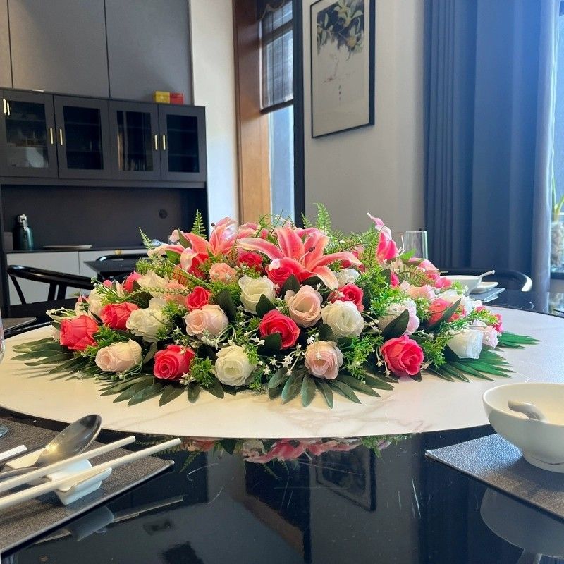 ホテルラウンドテーブルターンテーブル造花ダイニングテーブルフラワーアレンジメントハイエンドライト高級ミドルオーナメント装飾花造花ティーテーブルフラワー