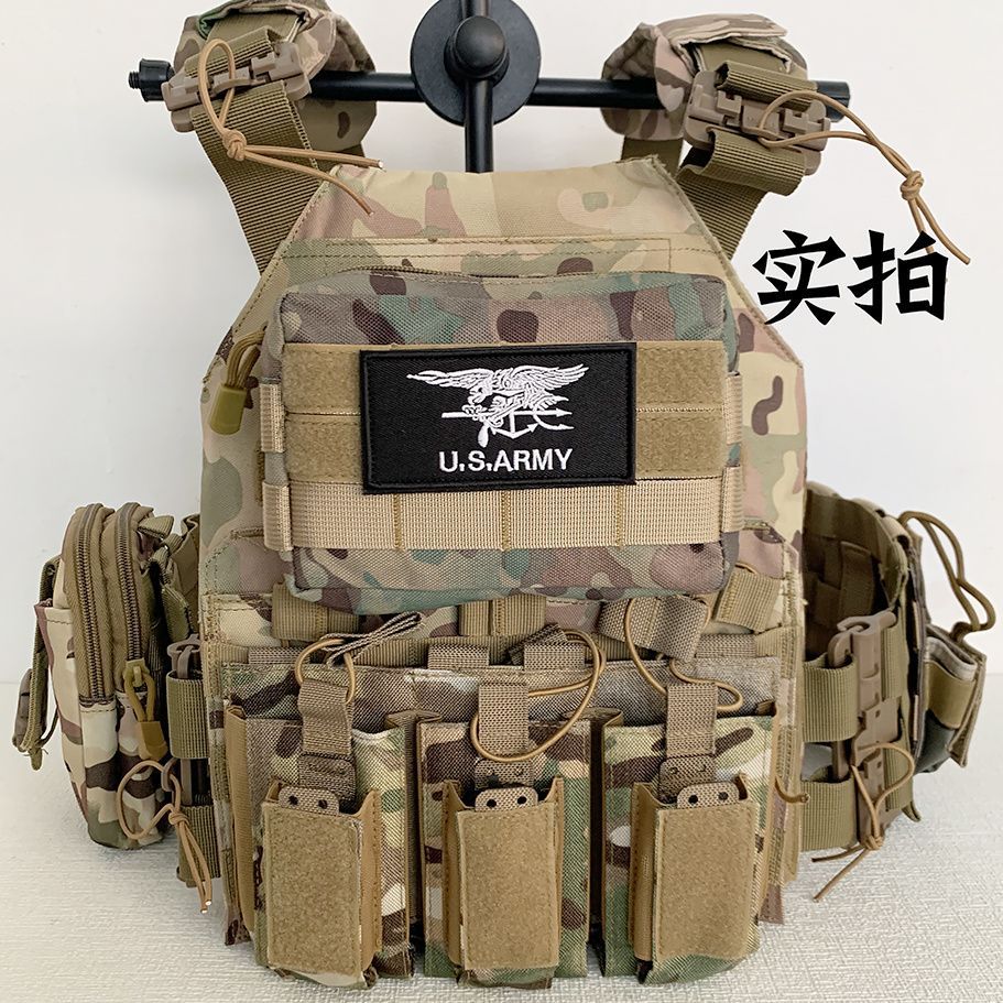 迷彩タクティカルベスト、クイックリリースベスト、防弾チョッキ、軍事ファン特殊部隊チェストマウント、ウォーゲーム軍事推奨装備のフルセット