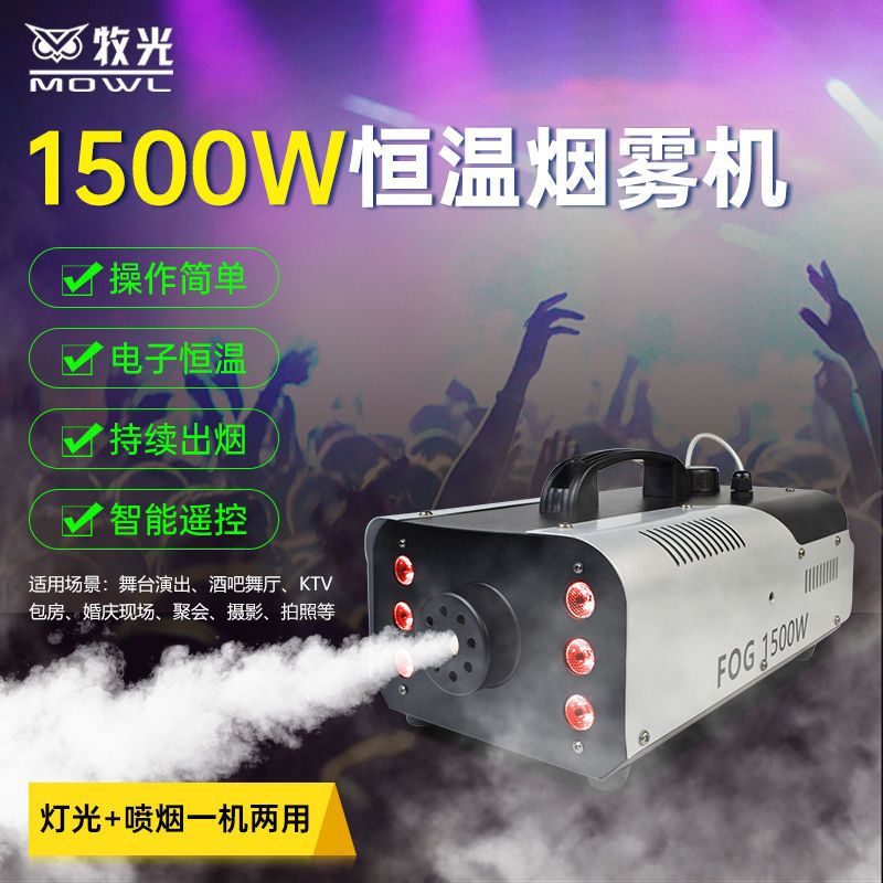 スモークマシンステージウェディングスモークオイル LED ライト付き 1500 ワットドライアイスガスカラーバースプレースモークマシン小型ポータブル