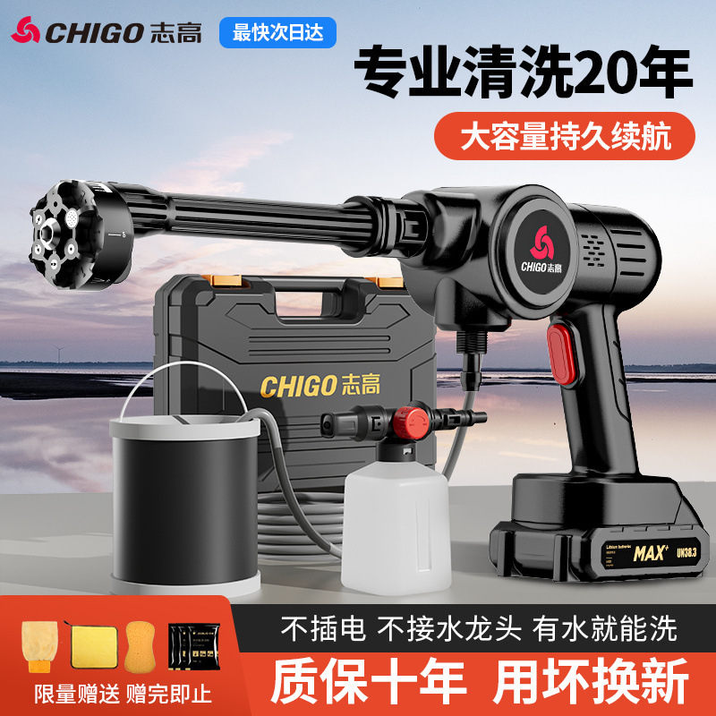 Chigo ワイヤレス洗車機洗車家庭用高圧水鉄砲アーティファクトハイパワーリチウム電池強力な充電ブースター