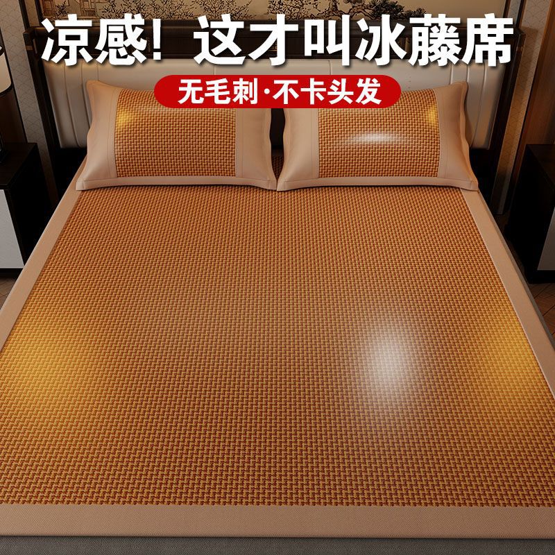 スヌーピー 厚みのある両面籐マット 3点セット アイスシルクマット 折りたたみ式 家庭用 学生寮 夏