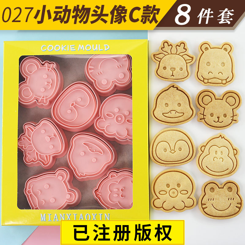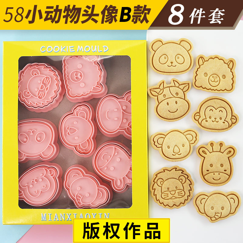 アニメ動物の顔クッキー金型b型8点セット3d立体押し式砂糖焼きクッキープレスツール