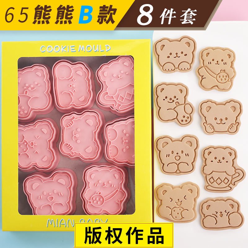 ベアービスケット金型8点セットb型diy砂糖焼き道具3d立体押しプラスチッククッキー型