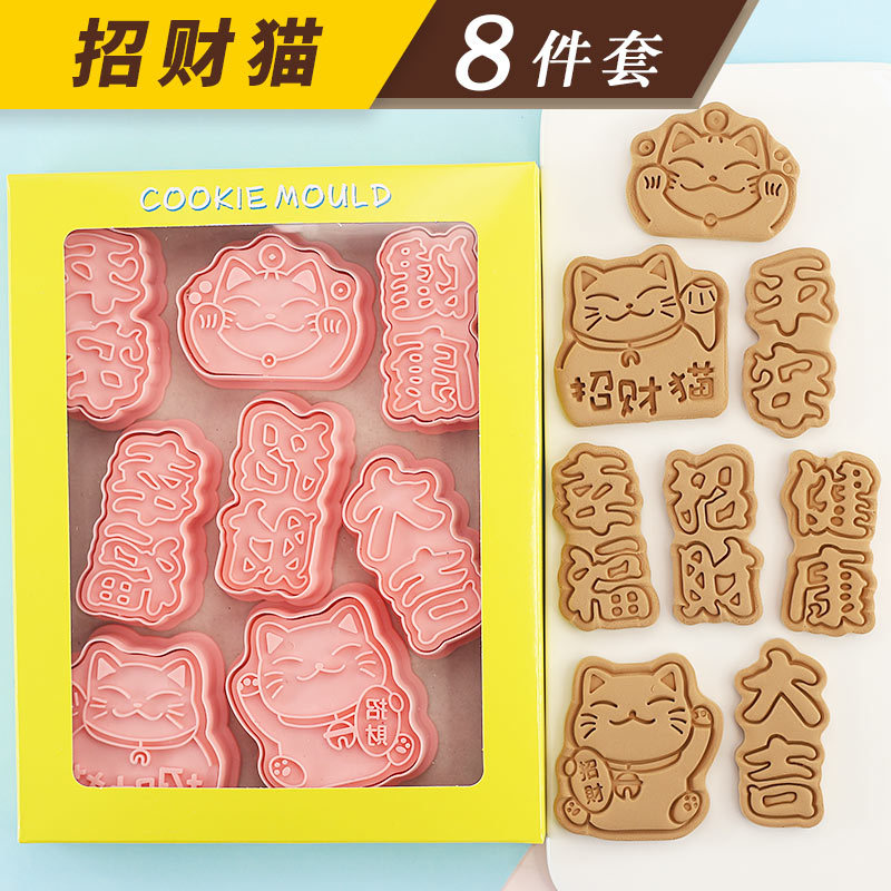 日本式招き猫ビスケット金型8点セット漫画祝福語3d立体押しクッキー