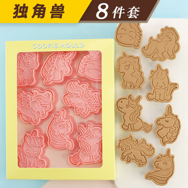 ユニコーン砂糖クリームビスケット金型8点セットアニメかわいい立体家庭用砂糖クッキークッキー焙煎ツール