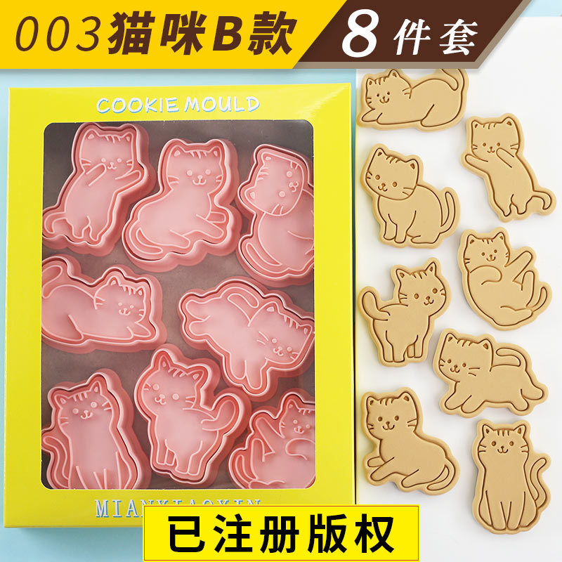 アニメ猫ビスケット金型B型8点セット立体押しプラスチッククッキー