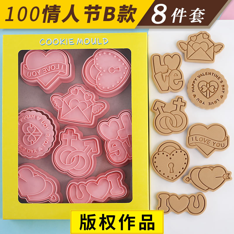 バレンタインクッキー金型b型8点セット愛3d立体押し漫画アイシングクッキー