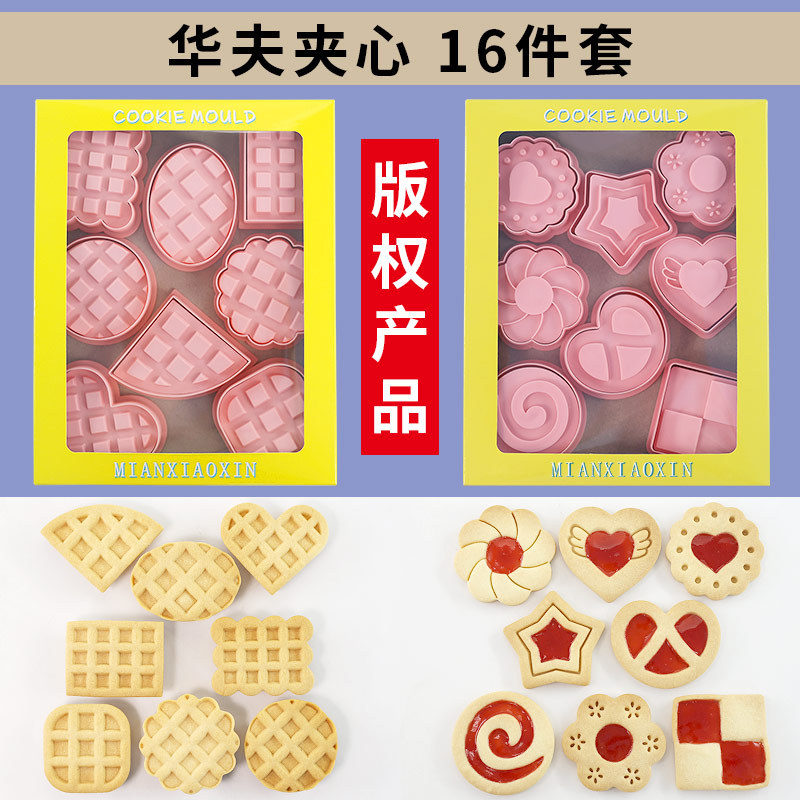 【16点セット】ワッフルクッキー金型ジャムクリームサンドイッチ砂糖焼き金型クッキー金型切り工具
