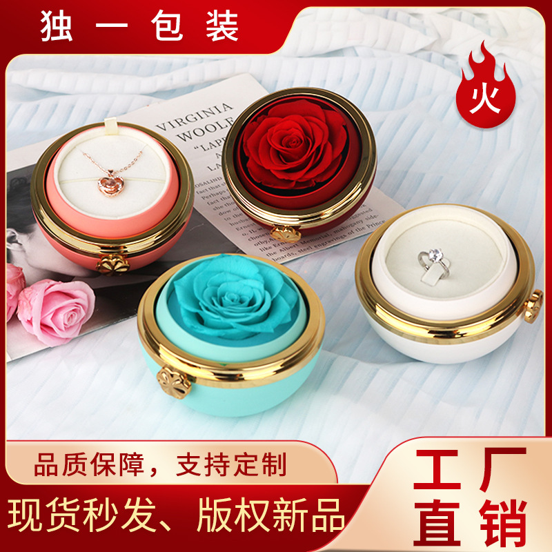 スポット中国のバレンタインデーラウンド回転可能な永遠の花プロポーズリングジュエリーボックスソース工場オリジナルデザイン