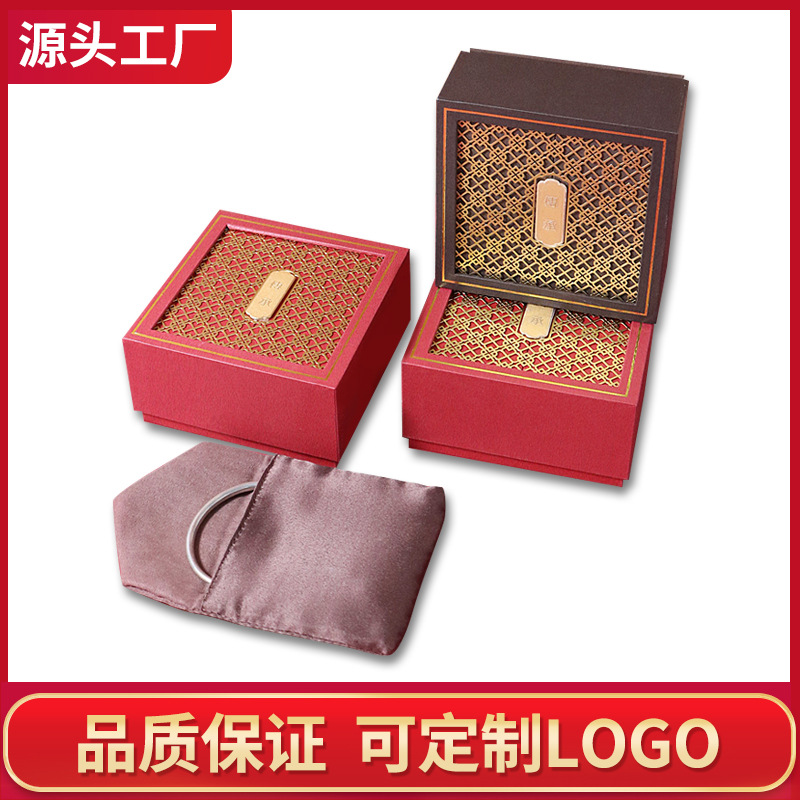 古典的なレトロ国風伝承古法箱ダブルオープン透かし彫り手串包装箱玉器黄金ブレスレット古遊箱