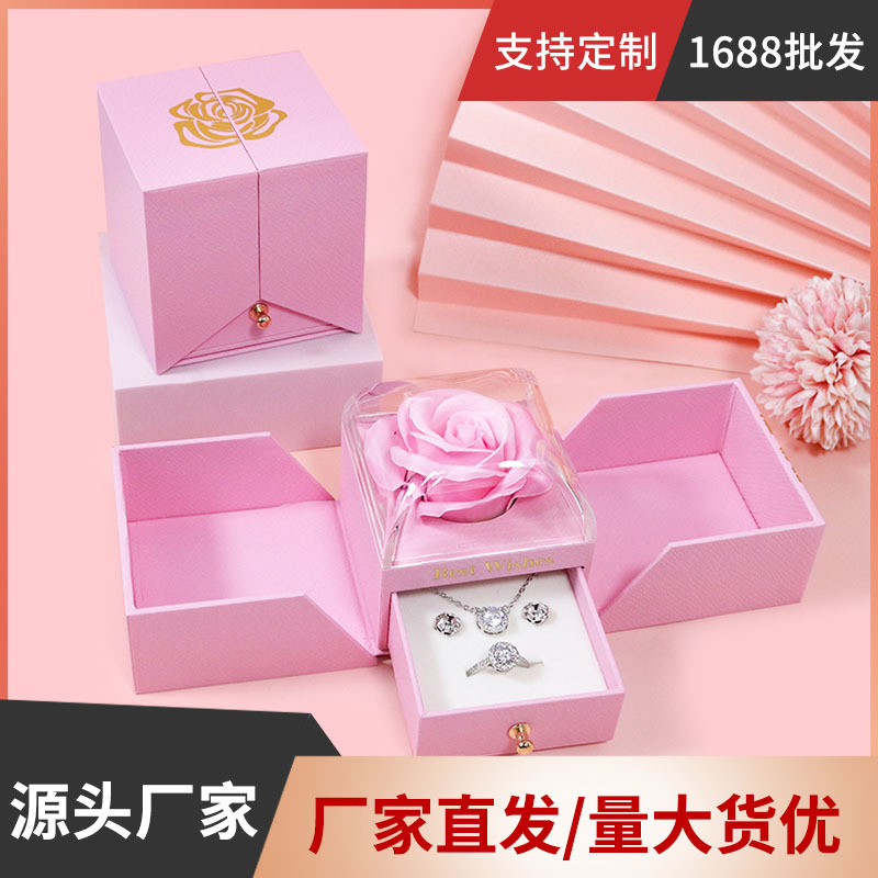 メーカー販促天地蓋六輪バラリングジュエリー包装箱ロマンチックな祝日イヤリングネックレス包装箱