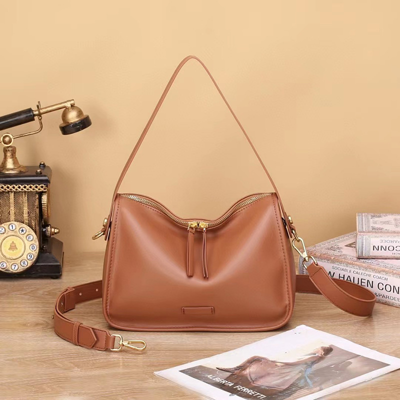 2024新型本革バッグファッション大気百合ビジネス高級感頭層ソフト皮手提げレトロ斜め掛け女性バッグ