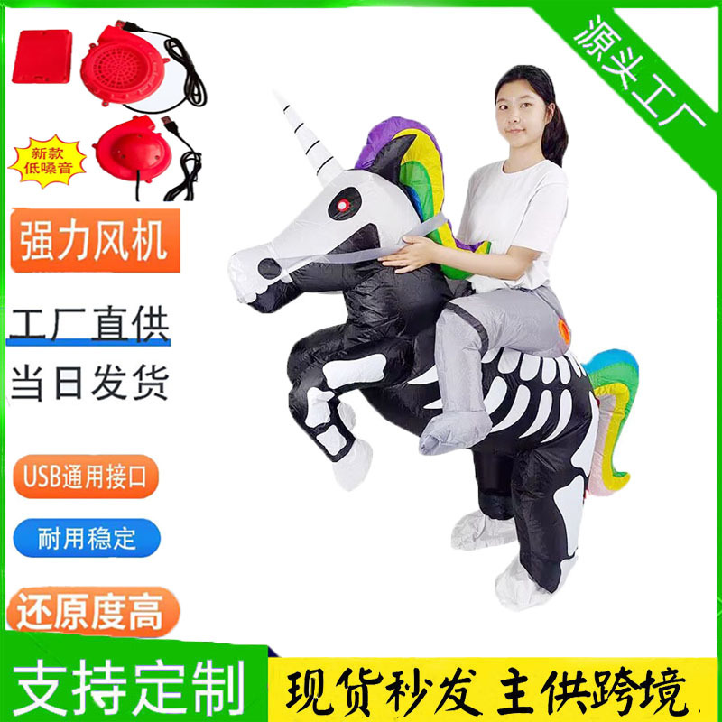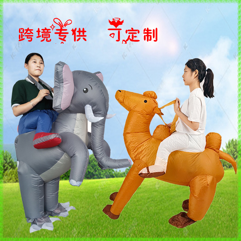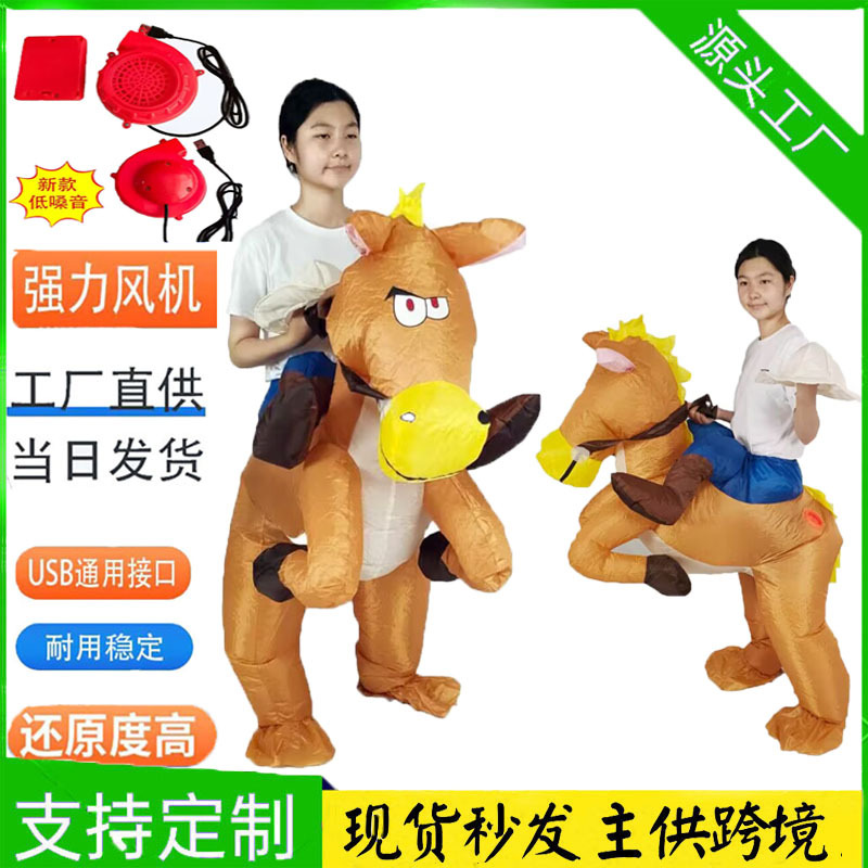 国境を越えたハロウィーンパーティーの道具は歩く馬人形服覇王龍が恐竜ラクダ象に乗って服を入れるのを責める