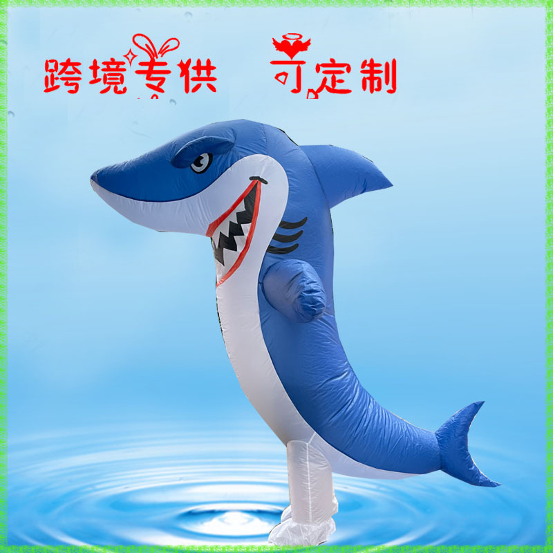 国境を越えた新しいキャラクターがアニメ動物ハロウィーンのおもちゃ人形服恐竜サメの空気入れ服装を演じる