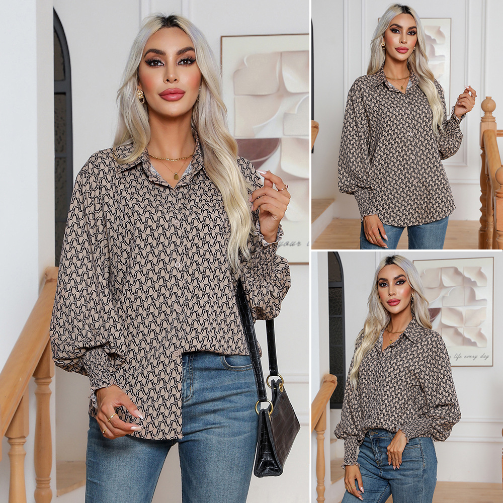 ファッションプリントの灯籠の袖のシャツの女性の長袖のシャツの秋冬の新型のアマゾンの欧米の対外貿易の越境の婦人服
