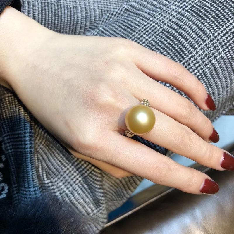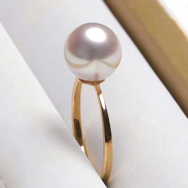 2023新作真珠の指輪の真円大粒の白い真珠の指輪の潮の18kの金の女の金のinsの風の活口の指輪