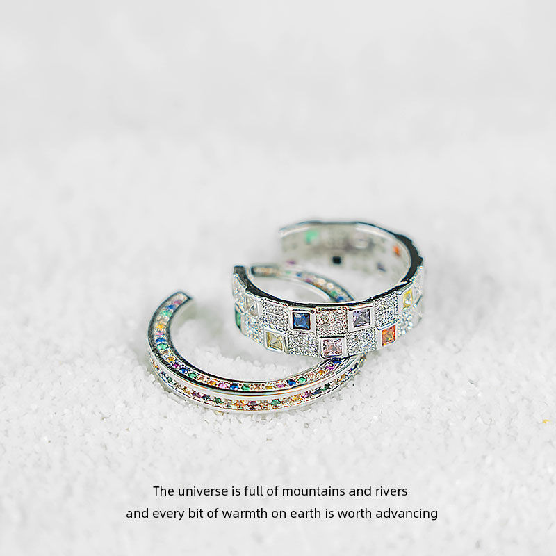 日韓の虹のダイヤモンドの指輪の女性の軽豪華なinsの大衆の設計の精巧な高級な指環のジルコンの開口部の指の指輪