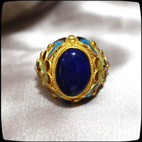 新商品のレトロな古法の手作りの銀の花のエナメルは糸の青金石のレトロな宮廷の指輪を絞めてチャイナドレスの漢を配合します。