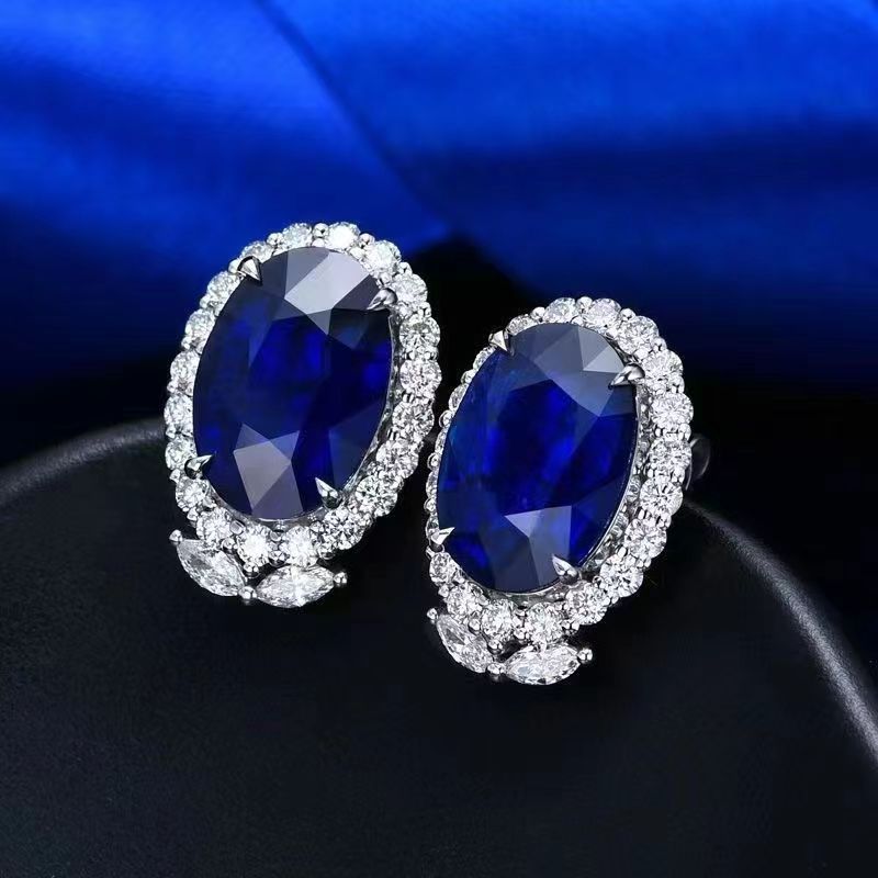 欧米の新型スリランカのロイヤルブルーのサファイアの卵型のピアスは簡単で、大気のクロスボーダーの供給源です。