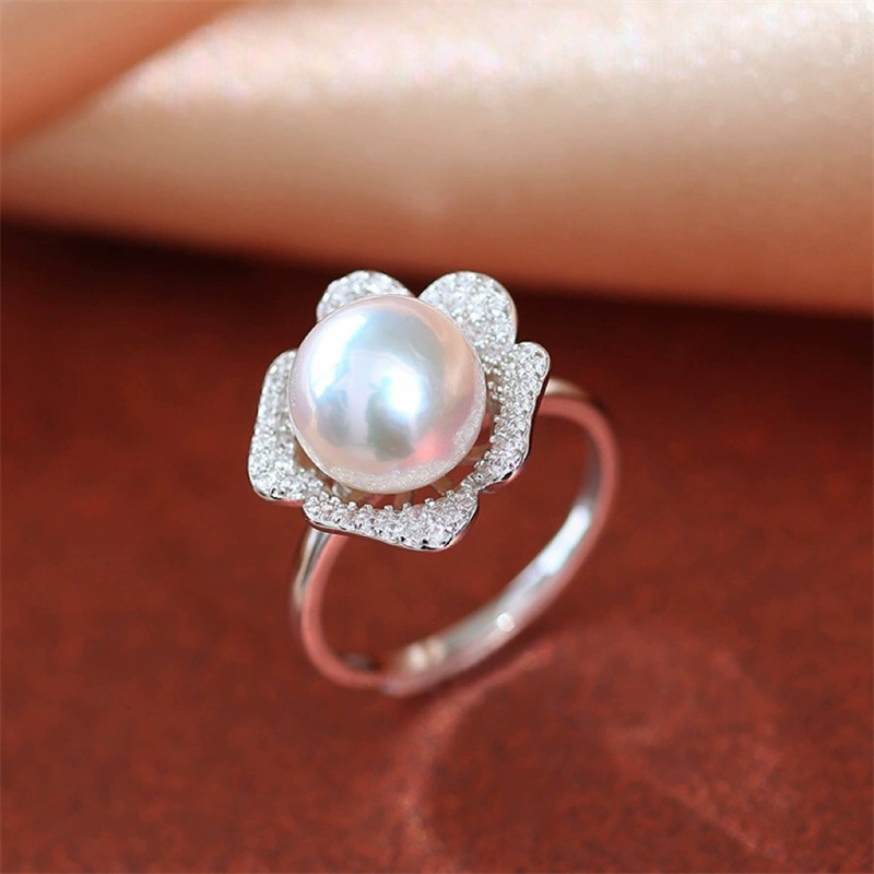 シンプルな白の真円真珠の指輪の花型のデザインの祝日はお母さんに経典の花の優雅な指輪を送ります。