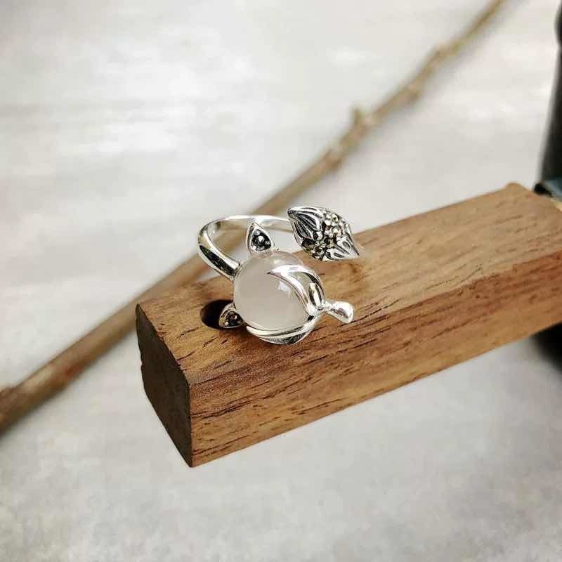 小狐の指輪のレトロな百合白は玉髄の個性の小さい狐仙の指輪の女性の指の贈り物の卸売りをまねます。