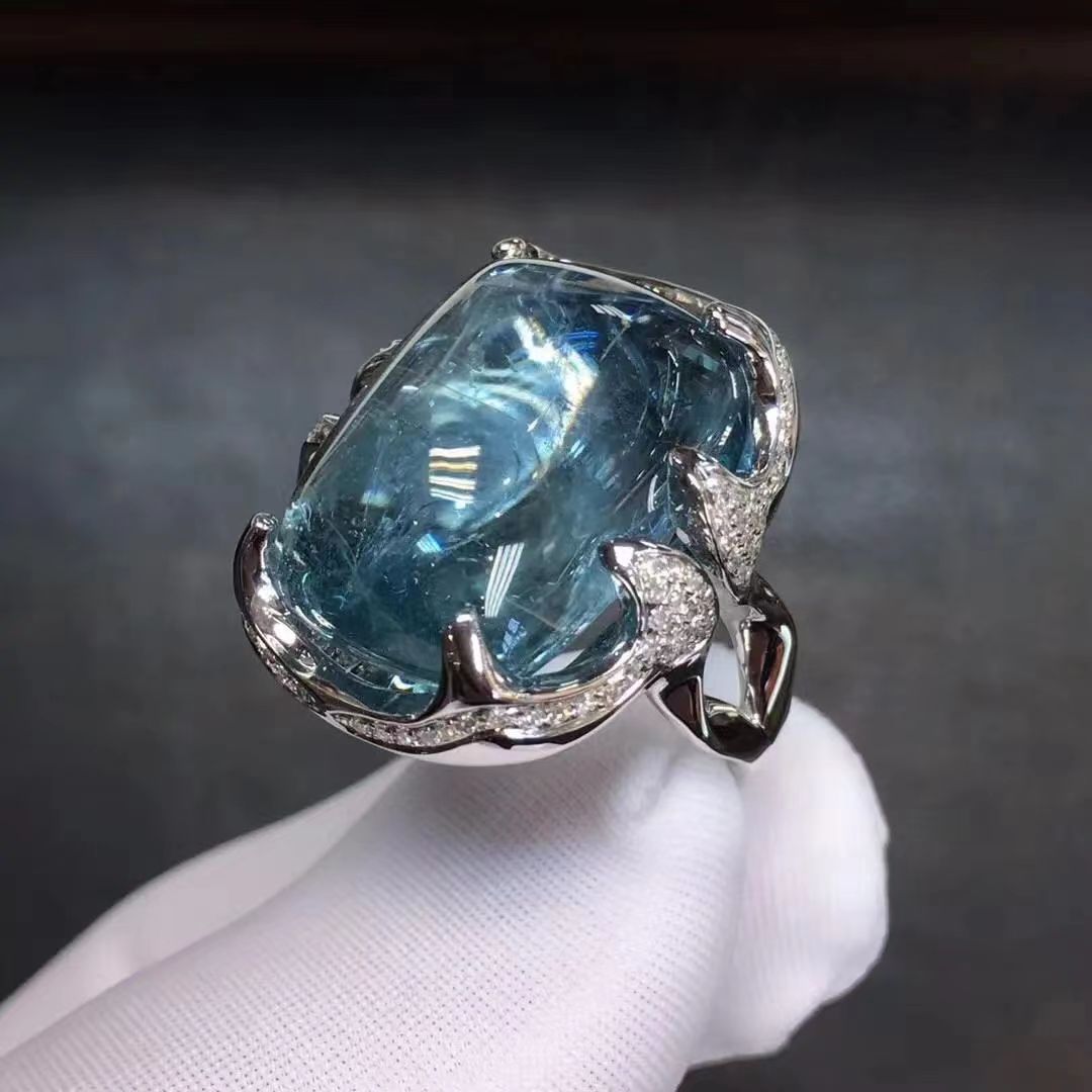 海藍宝の指輪を象眼して結晶の透き通った色の濃厚で独特な生放送を作ります。