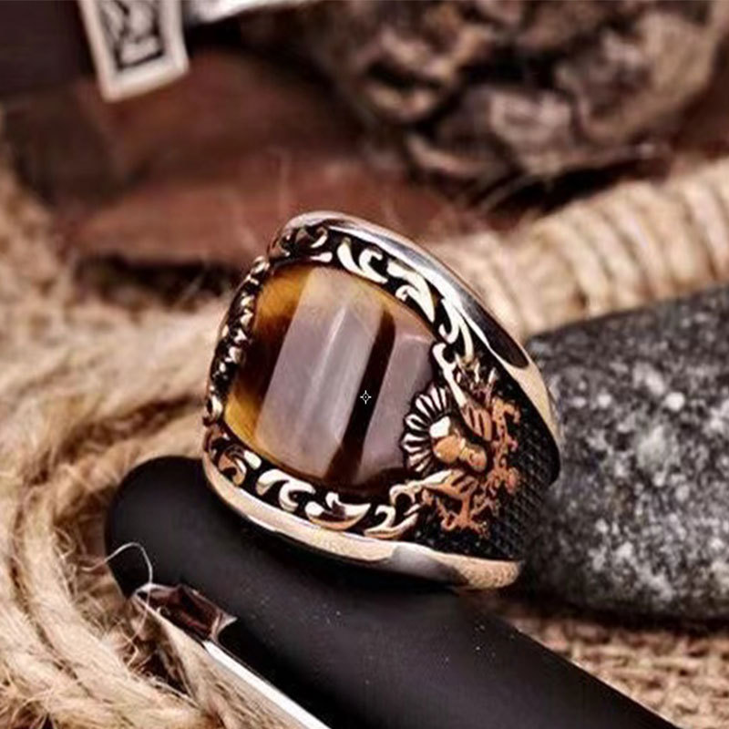 ジュエリーヨーロッパとアメリカンスタイルの人気のレトロなパターンブラックフェイズジルコンリングリングメンズライトラグジュアリー