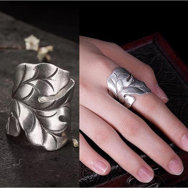 男女兼用 ヴィンテージ風 葉っぱデザイン タイ・チェンマイ産 輸入 ハンドメイド シルバーリング 大きめ 超ワイド アンティーク調