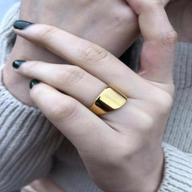 極めてシンプルな14k大げさな光沢面の広い版の個性の硬い朗風の復古の百合のカップルのファッションの指輪の指輪の金色