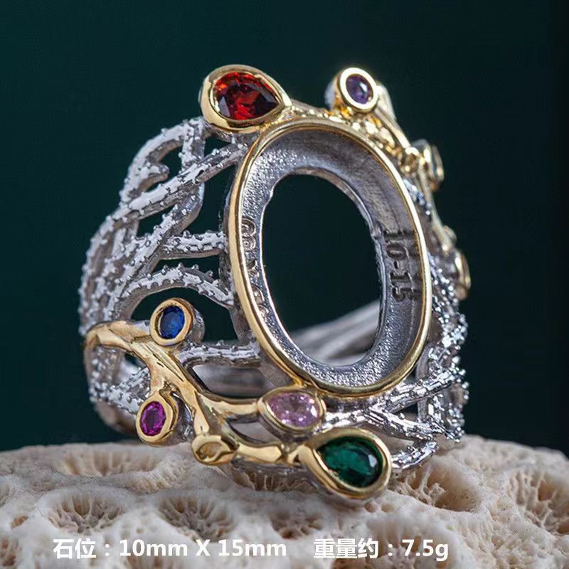 女性の指輪はイタリアの指輪の空托10*15の個性の復古の民族の銀の装飾の紫の水晶の新型を象眼します。