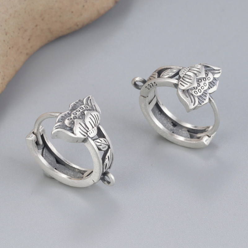 蓮の花の耳のイヤリングの部品は復古して古いつや消しの円環の耳のクリップをしてペンダントの耳飾りの卸売りをかけることができます。