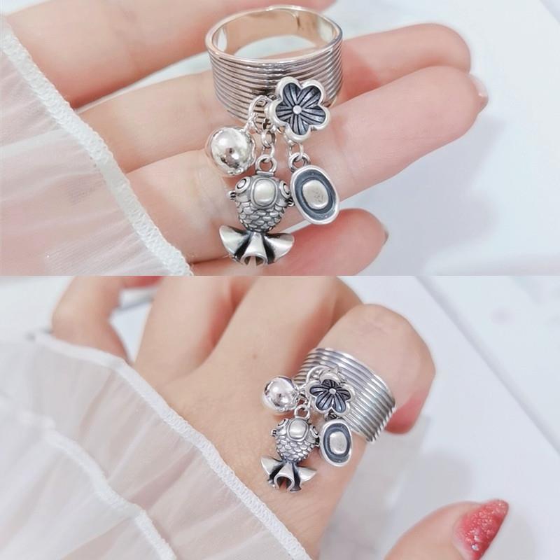 心音の指輪の女性の元宝の福魚の豊かなフリンジの花の指環は財を招いて輸送します。