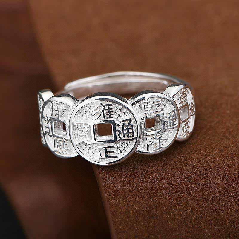 角穴五帝銭銀色の開口指輪ファッション潮男五帝貨幣指環介指潮代発