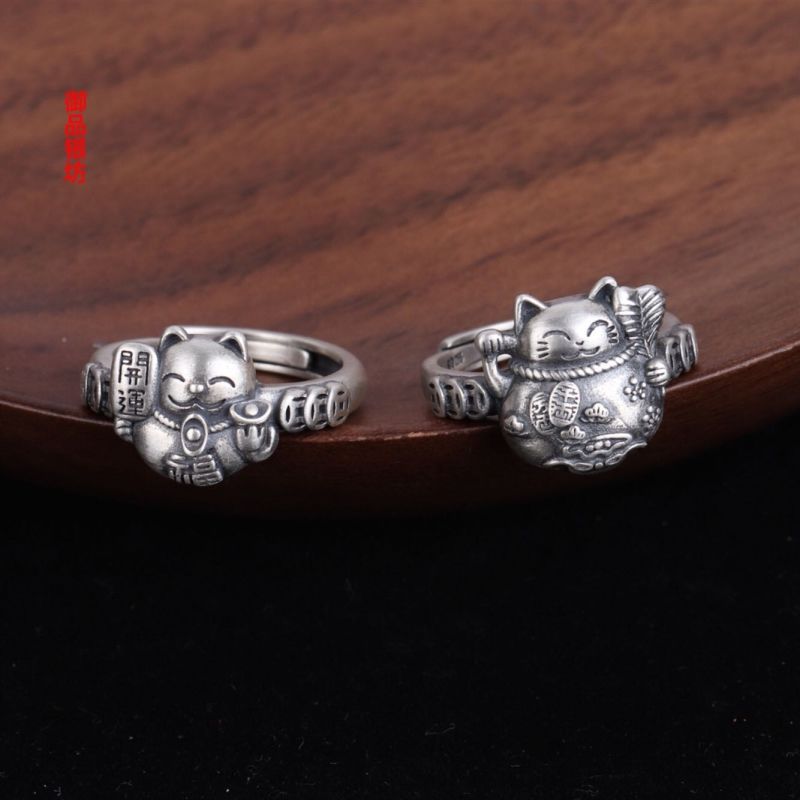 開運扇子招き猫の指輪はレトロで古い硬貨を作っています。