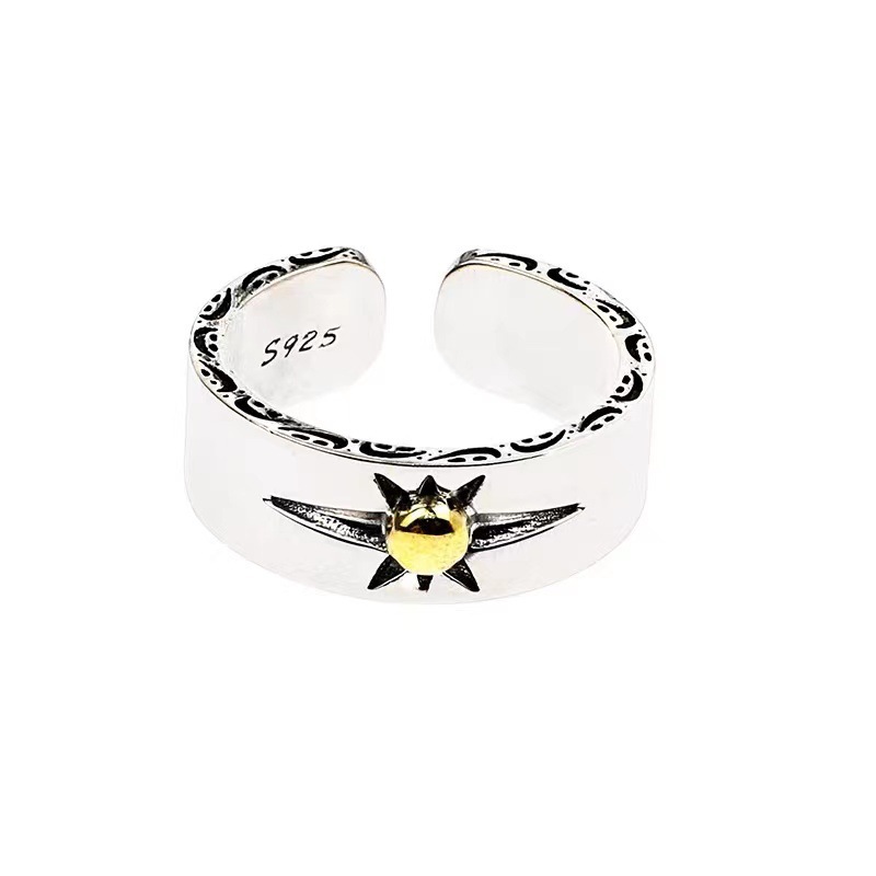 タイシルバーゴールドビーズサンメンズシングルトレンディメンズリングレトロ人差し指リングドロップシッピングローズゴールド