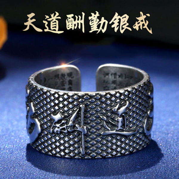 卸売り銀メッキ指輪ファッションレトロ泰銀男金万字紋六字真言戒人差し指リング代発