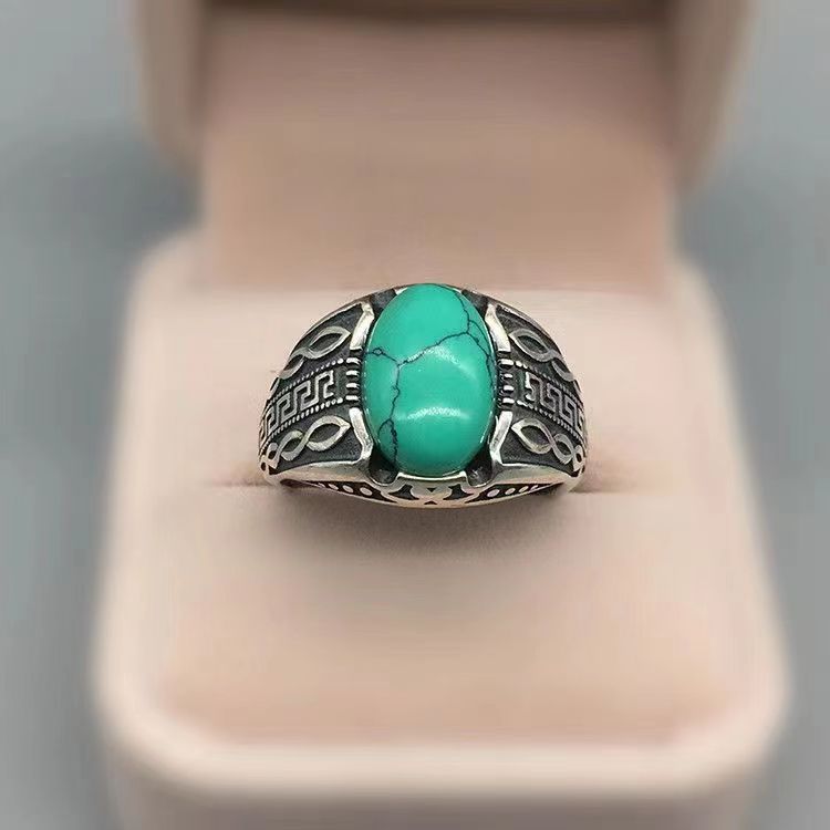 緑松石指輪銀飾りレトロモンゴル要素アクセサリー指輪風メンズ民族風チベット族ジュエリー