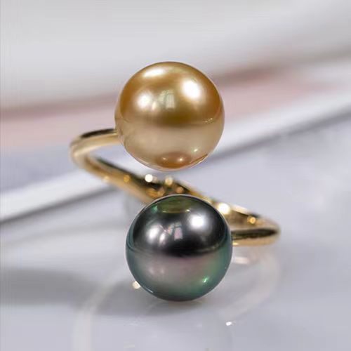 ホットセールのタヒチの双珠の指輪は真珠の指輪の開口部を象眼して真珠の指輪を調節することができます。