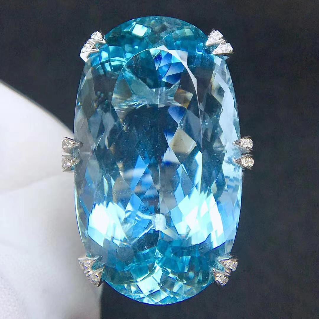 海藍宝のダイヤモンドの指輪はプラチナをめっきして結晶を象眼します。