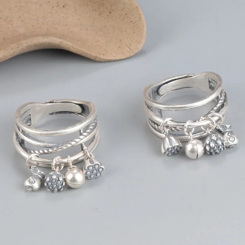 高級銀双喜蓮蓬流蘇指輪女性復古して古い開口部を作ることができます。