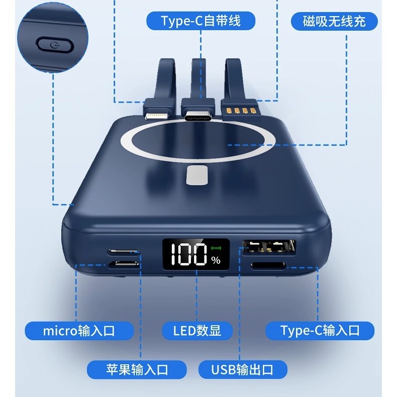 マグネット充電宝自帯線20000ミリアンペア小型携帯ミニMagsafe無線充電印刷