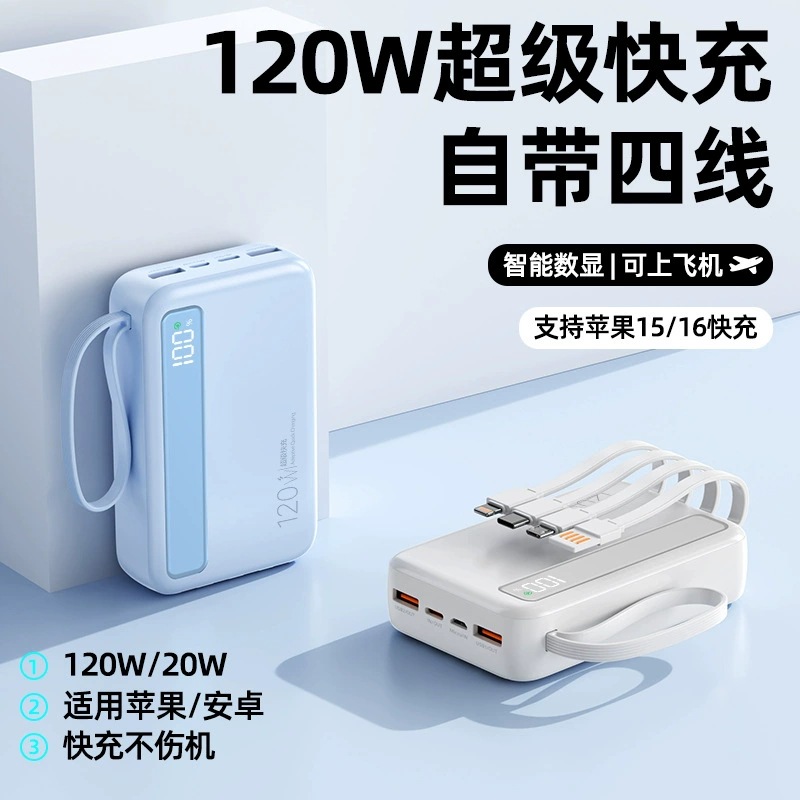 超急速充電120w充電宝大容量20000ミリアンペア自動帯線超薄型小型携帯飛行機