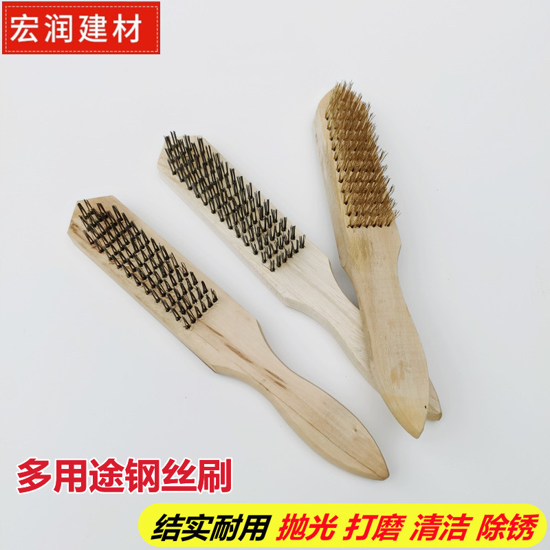 スチールブラシ木柄銅線ブラシ魚鱗取り工具ブラシ金属除錆洗浄研磨工具ブラシ