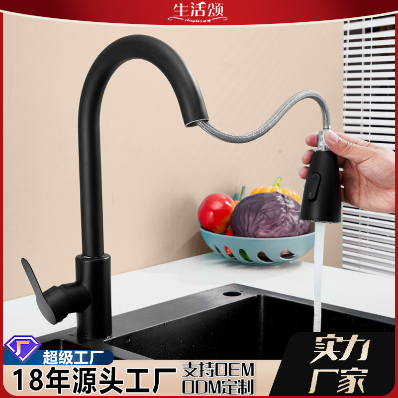 メーカー直販越境厨房引抜きステンレススプリング冷熱蛇口洗浄皿水槽混水弁蛇口