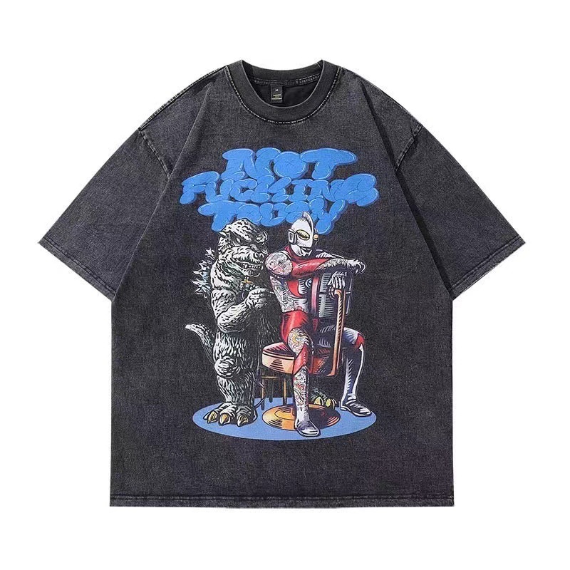 トレンディなアメリカンレトロウォッシュ加工ハイストリートヒップホップヒップホッププリントルーズ半袖Tシャツ男性と女性用