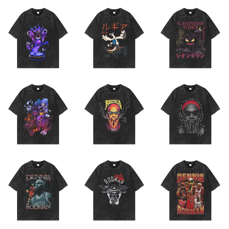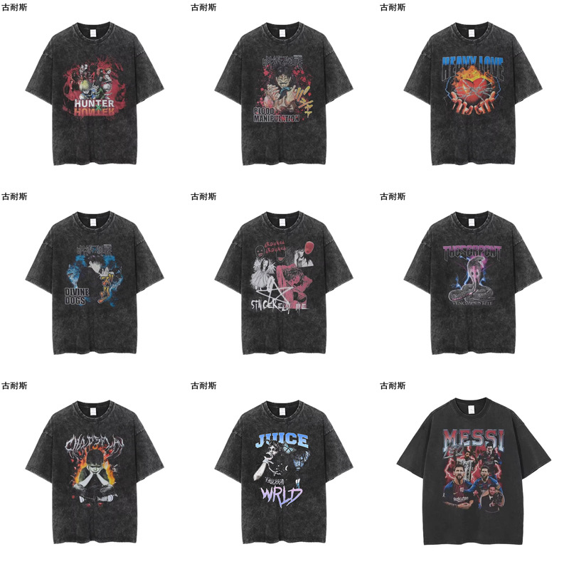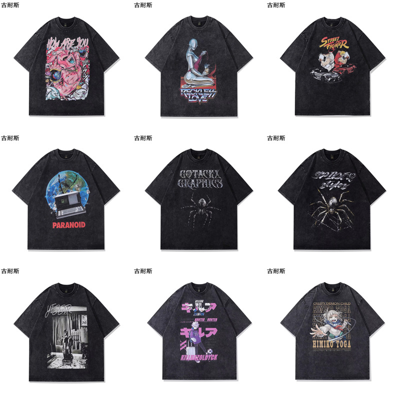 国境を越えたアメリカの街頭で水洗いして古いアニメの半袖tシャツを作ります。